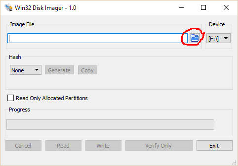 The next step, you want to select the location of where you want to save the backup image to. Select the folder icon in the image file section shown below: