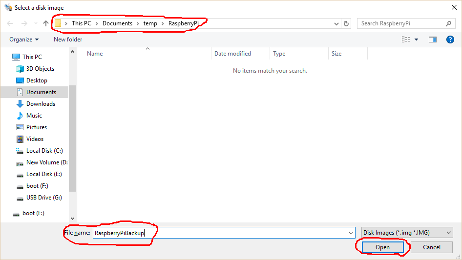 Browse to the folder where you want to save the backup to and give it a name and click the “Open” button